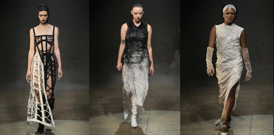 Velez’s work is heavily influenced by her Midwest blue-collar upbringing and her brand is dedicated to creating a space for the working class in high fashion. As a former metalsmith herself, Velez frequently collaborates with local artisans to amplify regional crafts through her deconstructed and industrial design style.