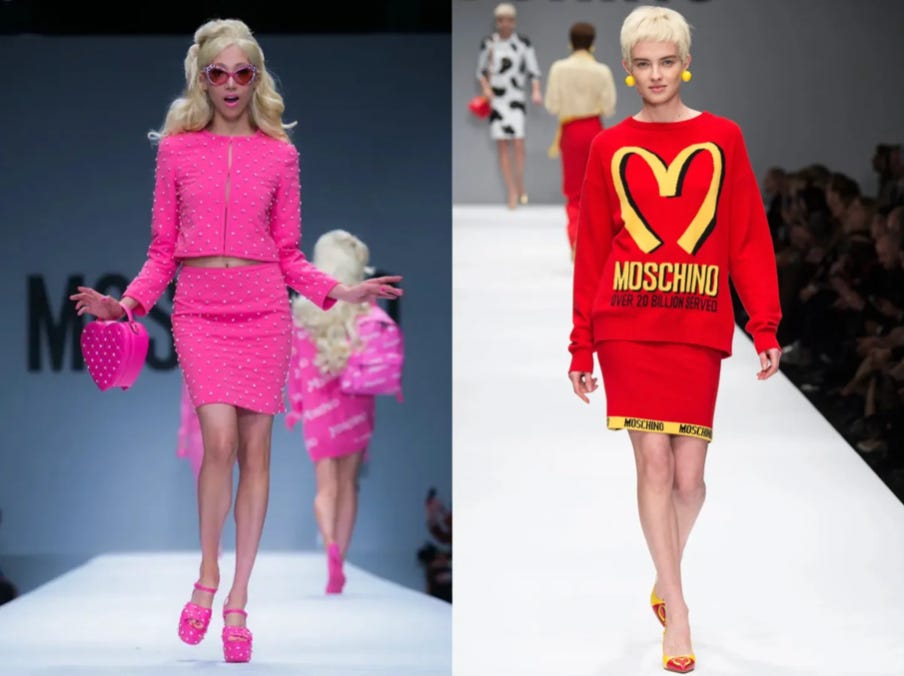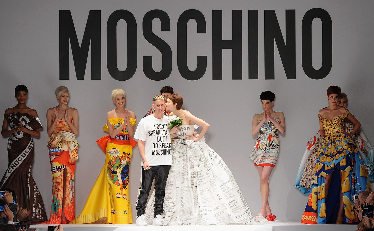 Moschino was founded in 1983, meaning their 40th anniversary is this year. The brand’s first decade was operated by, the founder and namesake, Franco Moschino. Franco Moschino was notorious for his witty and satirical designs that challenged the fashion hierarchy by parodying other luxury brands through his Couture! and Cheap and Chic lines.