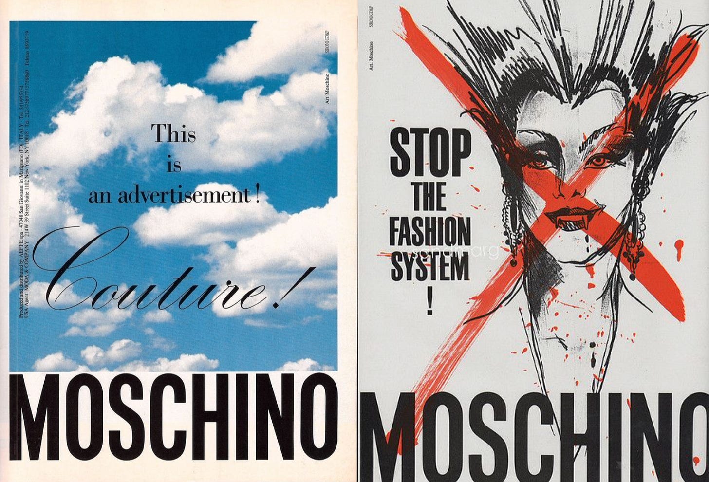 “Fashion is absolutely tacky. Being fashionable is not positive at all. Fashion is over. Let’s talk about something worthwhile. Fashion kills people. It is Fascism. As a designer, I have to convince you to change–to cut your hair, to change the frames of your glasses. You’re a creature of the fashion system, a Muppet, not yourself,” - Franco Moschino, New York Magazine, 1989.