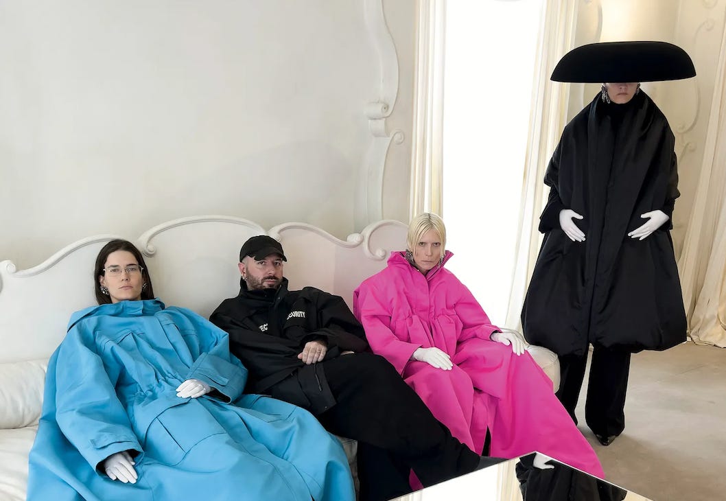 - The article opened with immense praise of Demna, citing quotes like “Demna’s the only one who talks about the things we’re all thinking about” and “[While] other designers take us to the Qing dynasty or the Belle Époque, to Djuna Barnes’s Left Bank flat or Talitha Getty’s Marrakesh villa. Demna had been willing to take us there” while (ironically) simultaneously calling all other designers and brands “pretentious.”